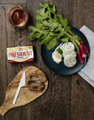 - Brush the edges of the phyllo dough lightly with melted butter.