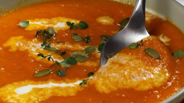 Rich, vibrant, and packed with flavor, this soup is the perfect starter or light lunch. Using frozen carrots and roasted red peppers, it’s both easy and affordable.