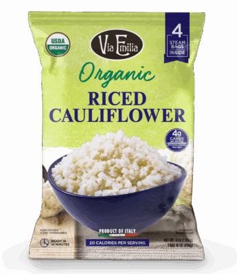 • 2 (16-ounce) bags Via Emilia Organic Riced Cauliflower