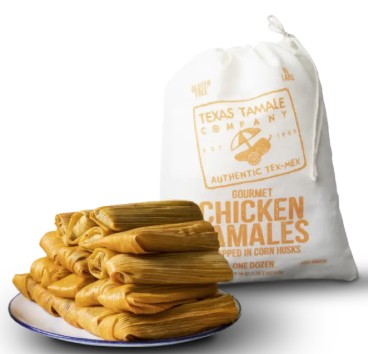 - 5 frozen Texas Tamale Company Gourmet Chicken Tamales Wrapped in Corn Husks