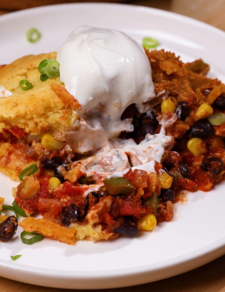 - Whisk muffin mix, milk and eggs in a large bowl until combined. Spread muffin mixture evenly over tamales and chicken mixture. Place skillet on a large rimmed baking sheet. Bake until golden-brown and a toothpick inserted into the center of the muffin mixture comes out clean, about 17 to 20 minutes.
