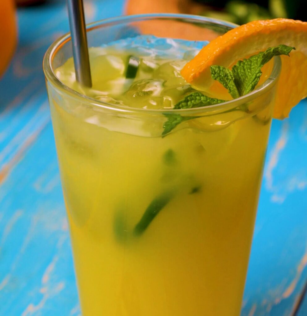 - Garnish rim of glass with an orange slice and mint sprig. Serve and enjoy.