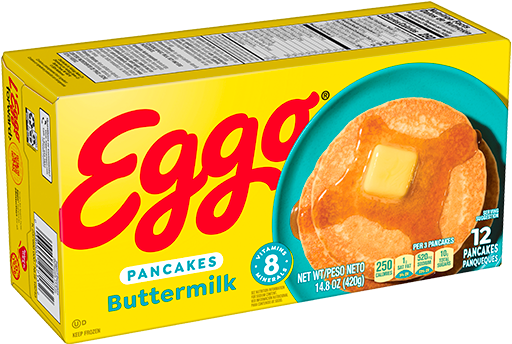 • 2 (14.8-ounce) boxes Eggo Buttermilk Pancakes or Eggo Protein Packed Pancakes, thawed and cut in half